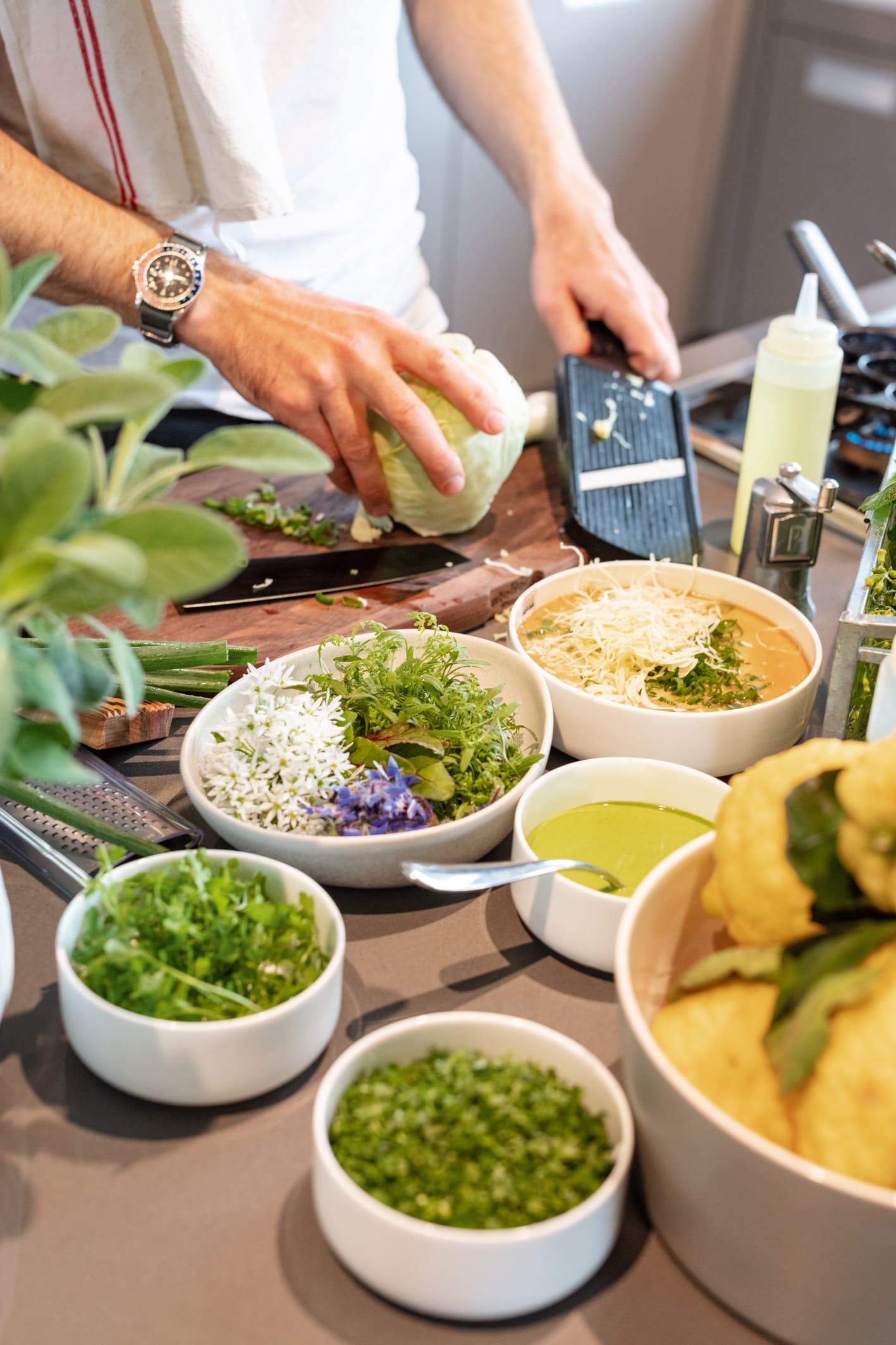 Our Green Gourmet Kitchen is central to the SOHO Experience, elevating your retreat with tailored culinary delights. All meals are vegetarian or vegan, prepared fresh, using organic products sourced directly from our garden and greenhouse.